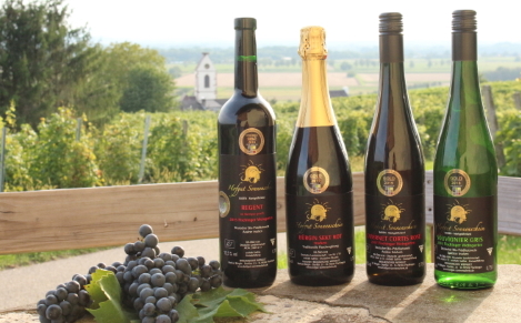 Im Zentrum unserer Arbeit steht das Weingut, welches sich durch höchste Qualität, Geschmack und Bekömmlichkeit auszeichnet. Dies belegen zahlreiche Auszeichnungen mit Bestnote anerkannter Weinpreise. Neben den ca. 20.000 Reben, die auf einer Fläche von ca. 4 ha angebaut sind, kultivieren wir außerdem ca. 20.000 Bäume Kern- und Steinobst auf einer Fläche von ca. 10 ha. Dies ermöglicht uns ein großes Angebot an Äpfeln, Birnen, Süß- und Sauerkirschen, sowie Zwetschgen und Mirabellen. Neben Tafelobst und Wein erzeugen wir Säfte, Sekt, Rotweinessig, Liköre und Edelbrände.